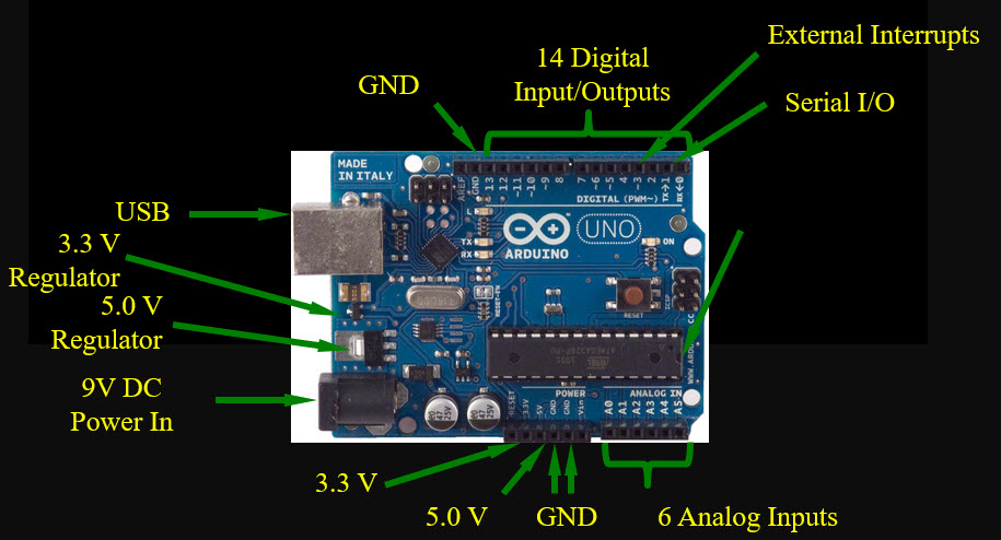 - Types of Arduinos: Uno, Due, Mega, Mini.