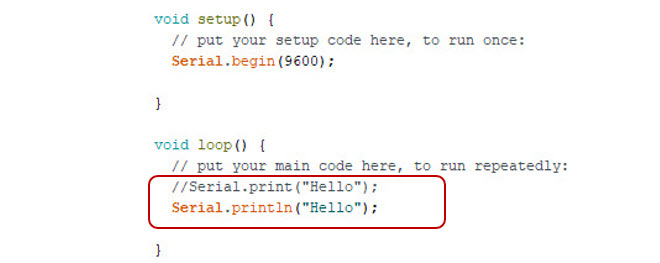 Serial.print(“Hello”); - Arduino language is based on C/C++