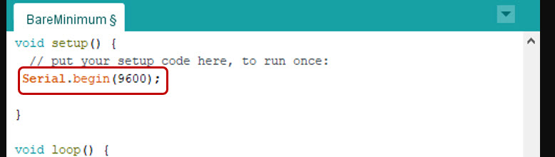 - Serial.begin( ) needs us to specify a communication rate (baud rate).
