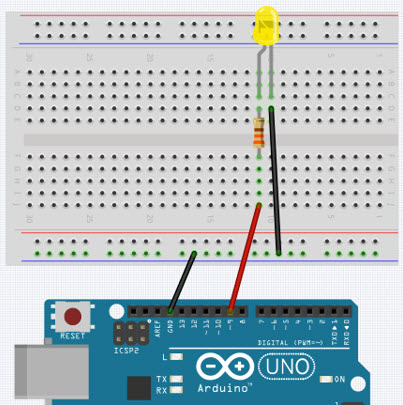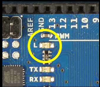 1. Connect a LED (+lead) to pin 13 and (-lead) to GND. Negative lead is usually the shorter lead.