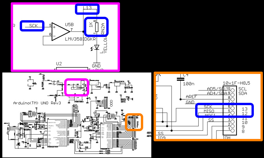 - So if we use any otehr pin to light up an LED, we need to add a resistor (1 kΩ)