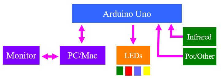 Lets' a different type of sensor that will detect motion and use our 4 LEDs to tell us how close an object is to our sensor.